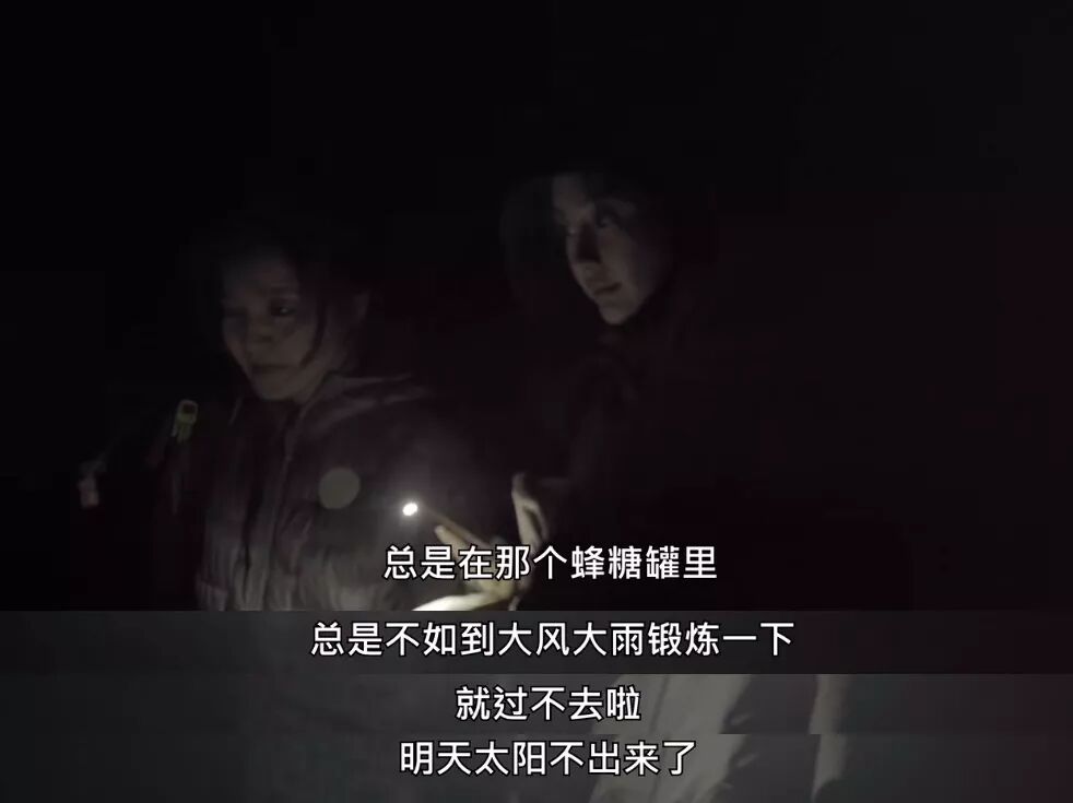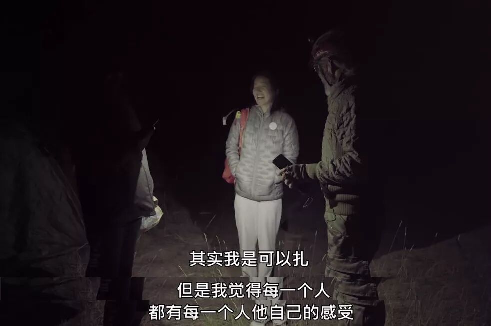有一晚,老徐坚决要求杨颖和阿雅不要再住酒店了,和他一起扎帐篷:“出来总要像点话,总是在蜂糖罐里总是不如到大风大雨里锻炼一下,明天的太阳不出来啦?”
