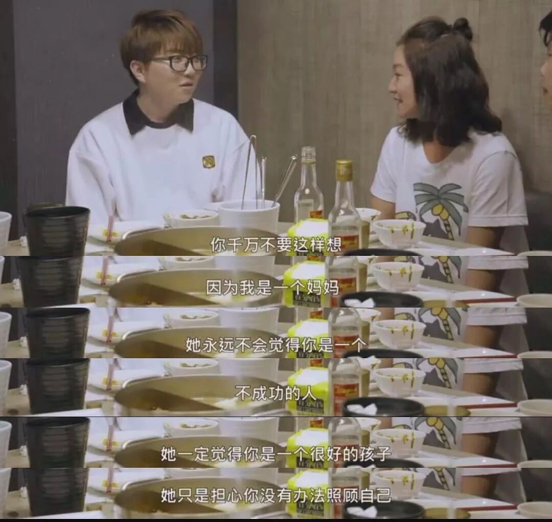 阿雅安慰她说,你千万不要这么想,因为我是一个妈妈,妈妈永远不会觉得自己的孩子是不成功的,她一定觉得你是好孩子,只不过会担心你不能好好照顾自己。