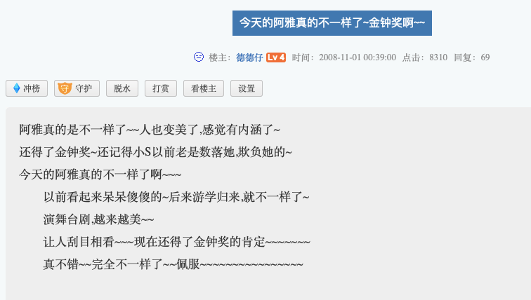 当时天涯就有帖子赞叹阿雅看起来已经和最开始完全不一样了。