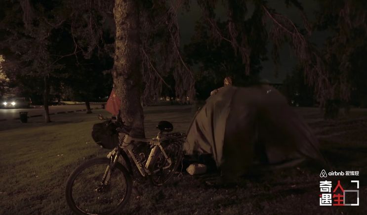 每天要骑60到100公里,为此可以吃面包泡热水当正餐,天黑了就找个公园或者草地扎帐篷睡觉,第二天一早醒来继续赶路。