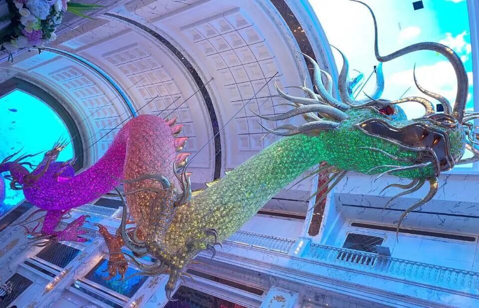据报道称,巨龙表面镶嵌了250万颗施华洛世奇水晶,可是成品效果好像不咋滴……
