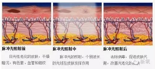 原理:利用光子嫩肤仪强脉冲光子产生的光化学作用,刺激肌肤,使真皮层胶原纤维和弹力纤维产生分子结构的化学变化,数量增加,重新排列,恢复其原有的弹性,以达到消除皱纹,缩小毛孔的效果。