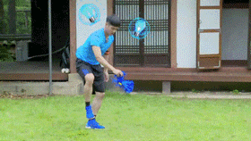 比赛踢毽子,这样大概可以快速踢很多而且永远不掉下来吧。