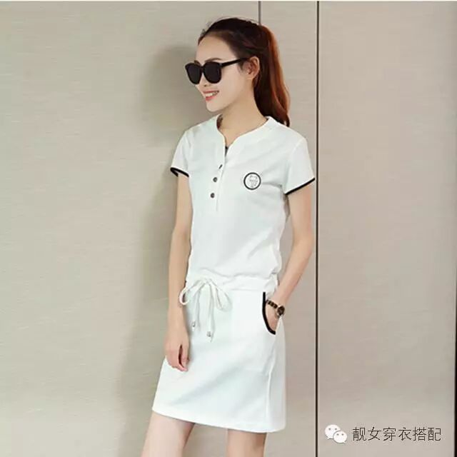 腻了千篇一律的小白裙,来点新意吧!一条休闲的运动风连衣裙,给你自由空间诠释个性,立体修身尽显窈窕身线,透露一丝小性感,魅力V领单排扣,搭配个性图案打破沉闷,休闲感与设计感并存。黑白灰三色选择,给你最想要的感觉,不管是逛街还是上班,它都是最吸睛的。
