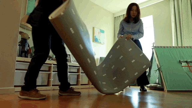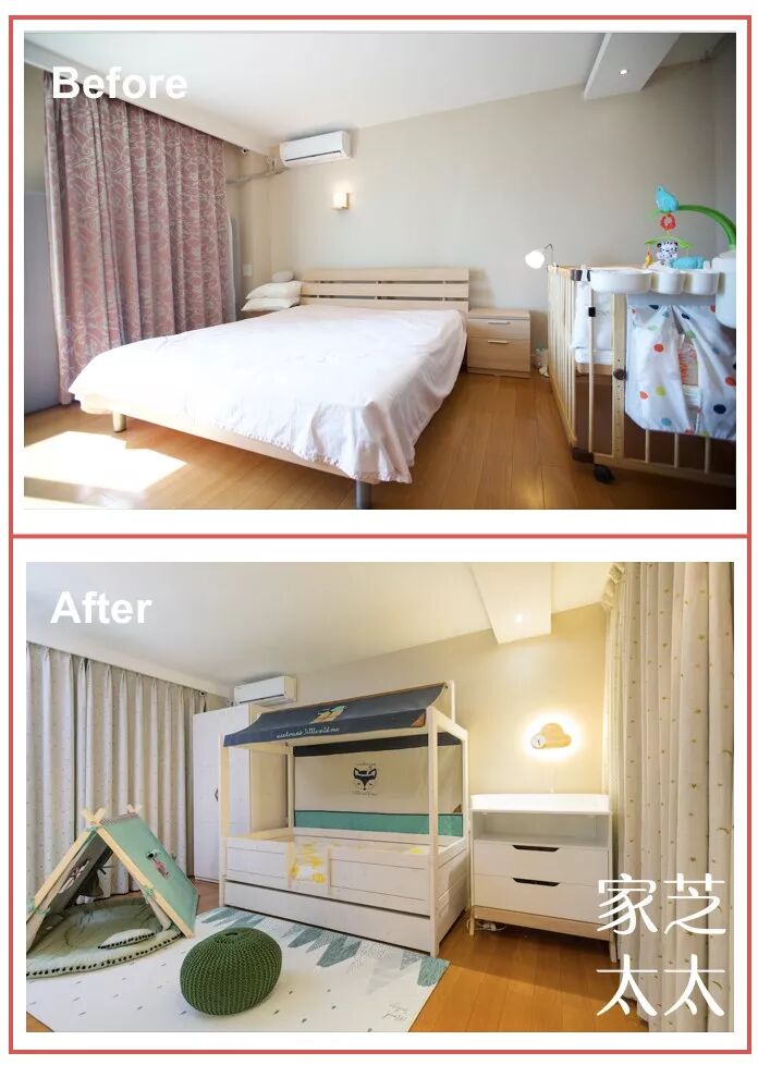 # 既然空间有限,就只能从时间维度上提高利用率了,白天宝宝的活动区域,到了晚上就闲置下来,这么大的空间恰好可以作为阿姨的休息区。