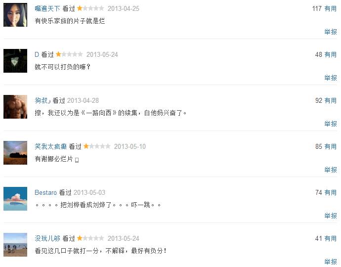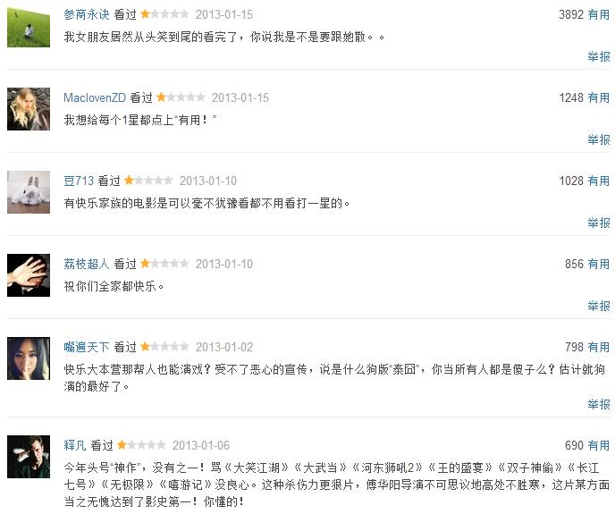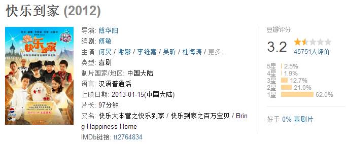 其实我也不明白为什么整个快乐家族都自带烂片体质,不过不得不说,快乐家族在阻碍中国电影发展事业上,真是起到了不可磨灭的作用……只要有他们其中任何一个人参与的电影,哪怕只是很小很小的配角,结果都是烂片!!!