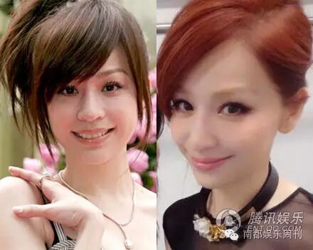 早年间刚出道时,除了有一个大家公认的“甜心教主”称号,王心凌在坊间还有一个“左脸女王”的诨名,意指其左侧脸显得甜美可爱,但从正面看,其下颚角的骨骼太过明显,除了令脸型显得过圆,左右脸似乎也不够对称。图为王心凌曾深陷整容风波,图为整容前后对比。