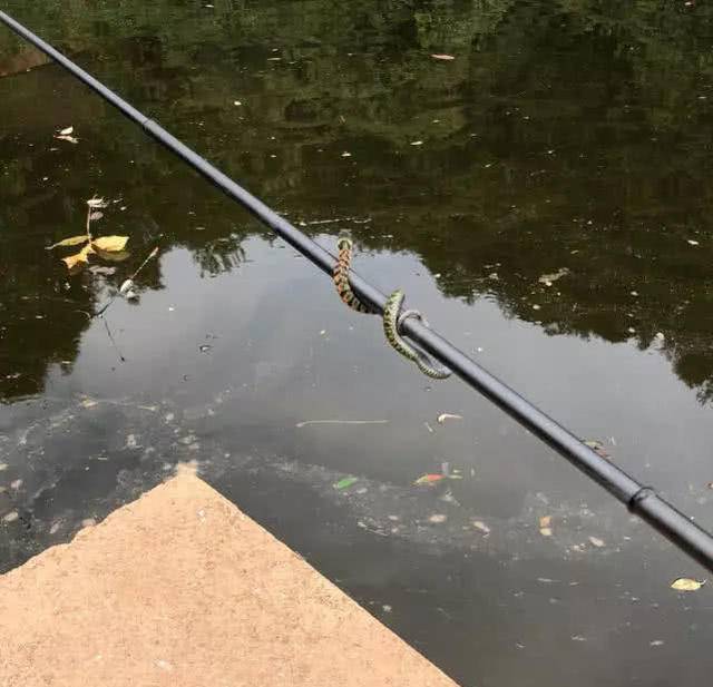 这位钓鱼说——不过,也有网友羡慕说,这条蛇价值极高,可能卖一两千元,可以换根鱼竿了。。。