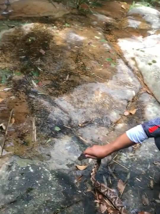 溯溪钓鱼,碰到大蛇拦路,钓友“主动出击”捕获