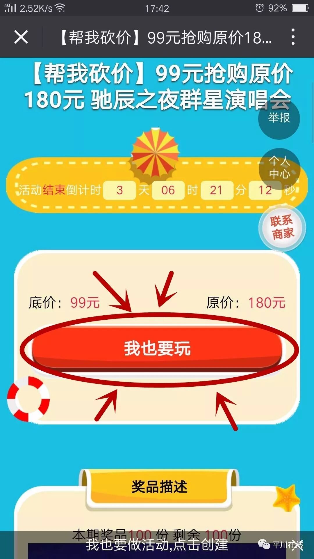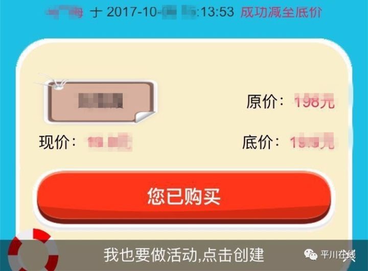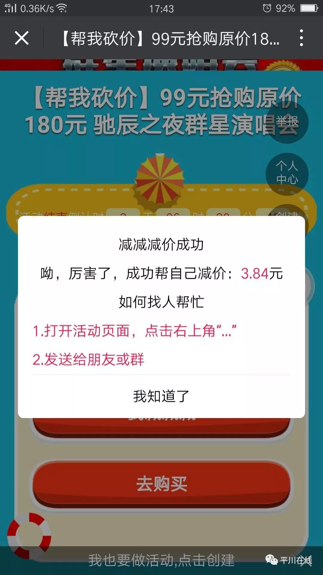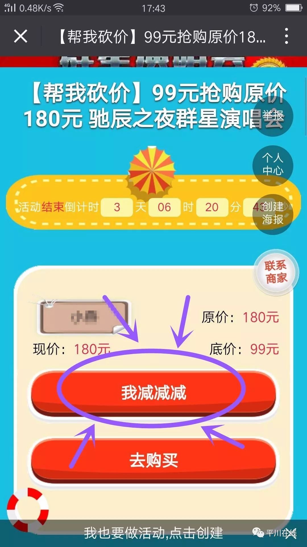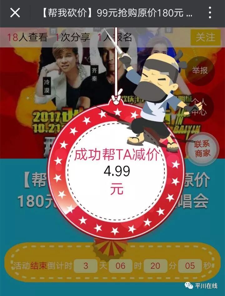 进入平川在线公众号,点击菜单“火爆现场”,进入“疯狂砍价”