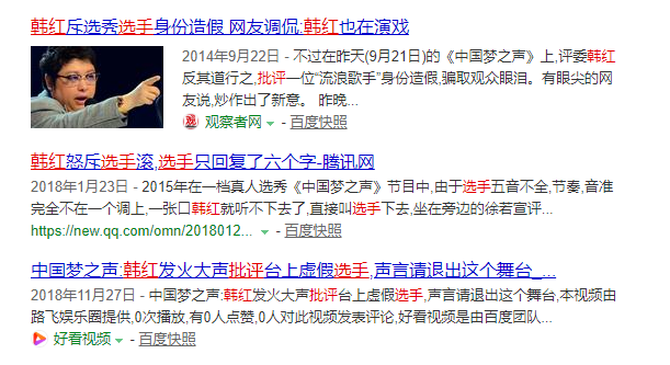 批评选手唱歌没有感情、告诫选手当歌手不是只要长得帅就可以、怒斥选手身份造假“假装流浪歌手来赚眼泪”……那些观众都司空见惯的博眼球把戏,在韩红眼里零容忍。