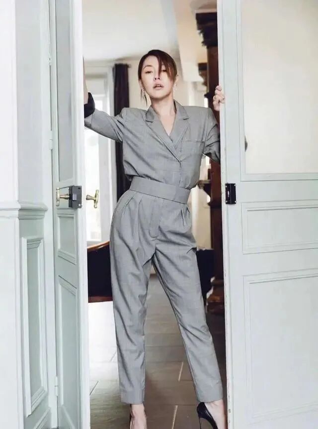 西装套装的搭配看上去还挺干练的,小个子如果想要显得气场更强,可以参考徐熙娣这种时髦的穿法,并且她把西装塞进了裤腰中,腰线很明显,身材比例看上去很好。