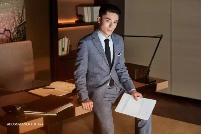 霍建华先生神情专注倚靠在办公桌上,裁剪精准的西服结合了BOSS 2016春夏的轻盈面料,塑造出轻柔易打理的特点,满足当代男士活跃、快节奏的生活方式。