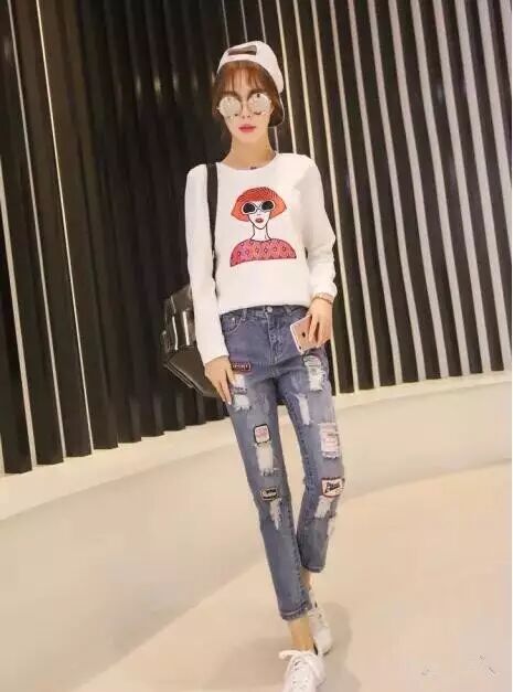 牛仔裤时尚破洞设计,它们性感、简洁、随性;它们拥有魔力,可由你喜好自由变换出任何表达。并带来一股不同的潮流,昭示了年轻且精致的时尚态度。