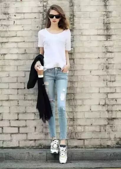 这种微破才刚刚好~,简单的纯色搭配,更容易凸显气质~