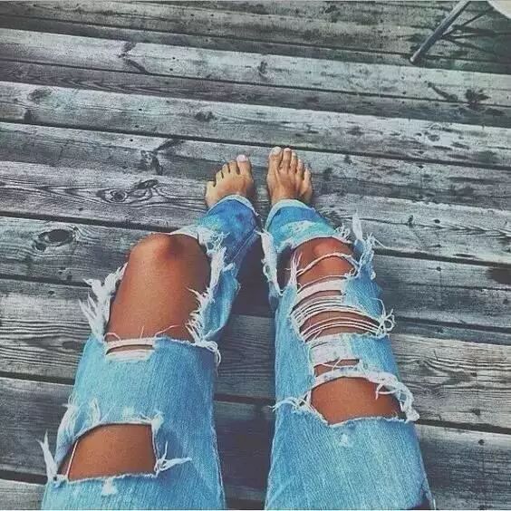 这种脱丝,不是直接来个洞的牛仔裤也可以~