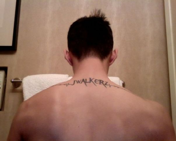 朴宰范后背上纹有一个大大的“J WALKERZ”!粉丝们肯定都知道啦~这个纹身的意义就是永远不会忘记你们这些可爱的粉丝宝宝~