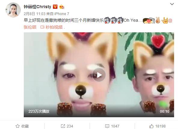 这两天,我们被微博热搜第一给狠狠虐了一把:钟丽缇与小她12岁的老公新婚三个月了,两人秀出恩爱视频,又又又又撒狗粮了!
