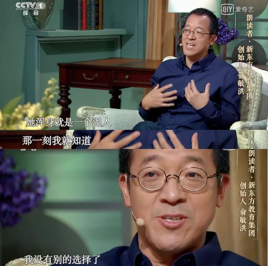 《朗读者》的节目现场,俞敏洪谈起母亲当年对自己的支持,不禁热泪盈眶。