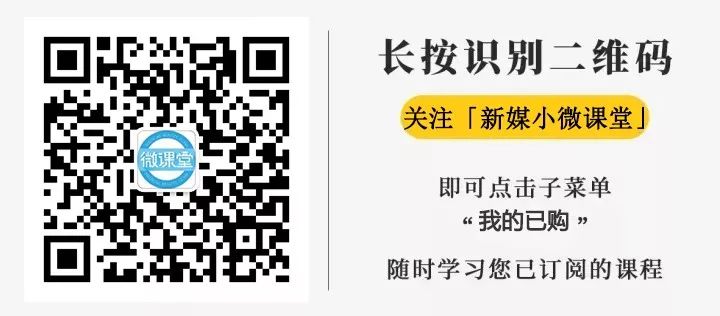 长按识别下方二维码,关注微信公众号:新媒小微课堂,既可在公众号底部菜单“个人中心”-“我的已购”里随时收听。