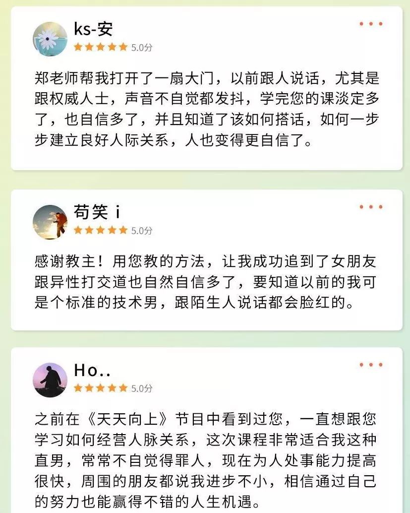 他开设的课程《突破陌生社交的20堂人脉盘活术》,受到学员的一致好评。