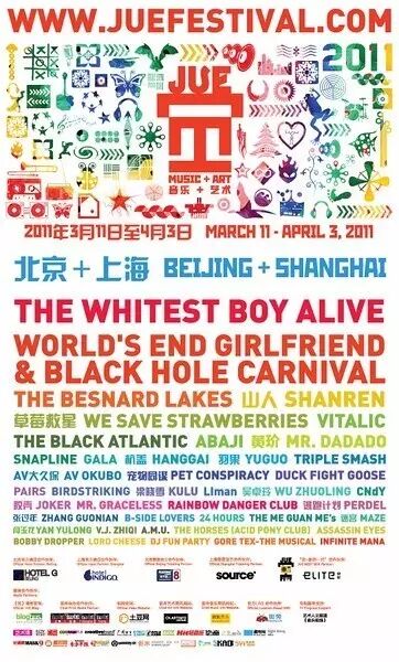 The Whitest Boy Alive, GALA, World's End Girlfriend, 山人乐队, 黄玠&草莓救星