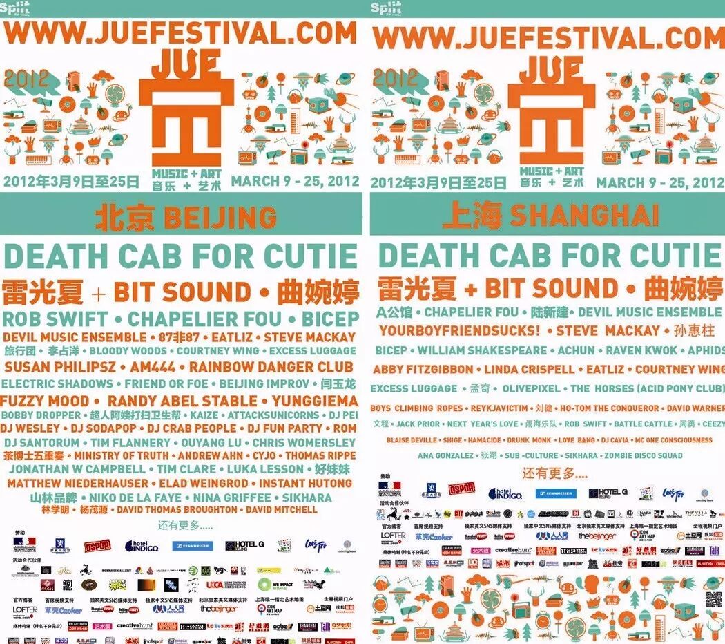 2012《觉》音乐+艺术节Death Cab for Cutie, 曲婉婷, 雷光夏+BIT Sound, Steve Mackay, Chapelier Fou等