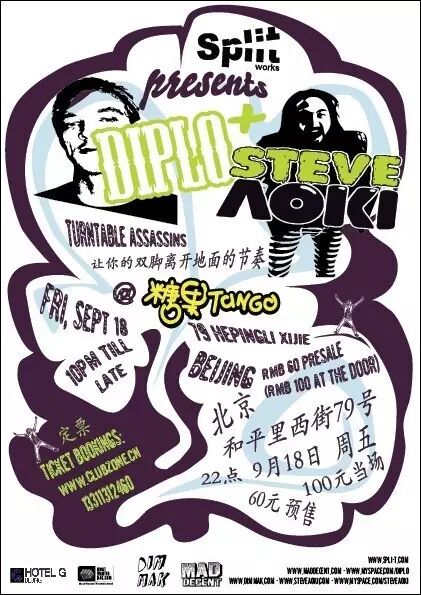 故事从2006年的百加得超音声场(Bacardi Sino Sessions)第一场表演开始。百加得大家应该不陌生就是今天在超市里常见的那种朗姆酒,下面的海报上也会有其LOGO标志,而超音声场就是开功当时呈现的一个品牌或者称为项目。简单的比喻就好比像今天的百威风暴。这便是开功Split Works的第一场演出的开始!(如有错误请各位老师指正)。