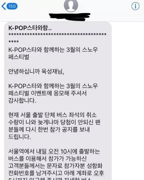据悉BTOB成员陆星材以观众身份入选了自己出演的韩流音乐节活动,陆星材于今日在个人INS晒出了一条短信,短信内容正是“与韩流明星共度时光的三月冰雪节”的观众入选通知,短信中写道“您好,陆星材先生,谢谢您对此次活动的参与”,短信中还具体告知了出发时间以及前往活动现场的大巴车座位号等相关通知,陆星材在INS中写道“哇,那我明天坐公交车去就行了吗?谢谢邀请”。