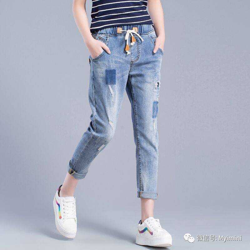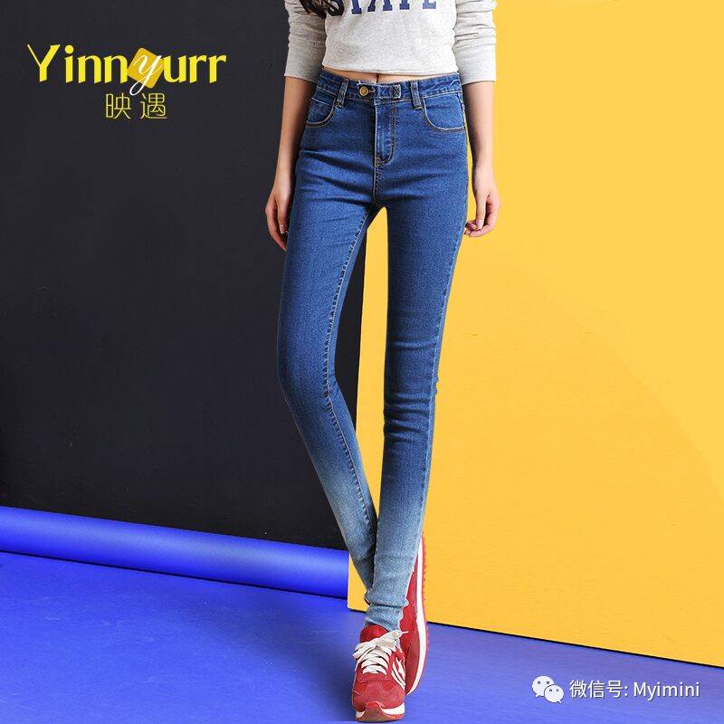 2017韩版弹力牛仔女款毛边显瘦小脚裤