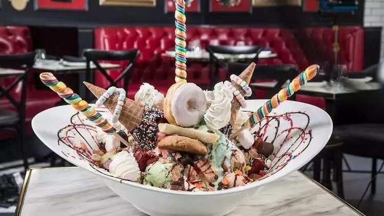 Cafe店菜单中还有全世界最大的雪糕Sundae ——他们家著名的“24-scoop King Kong Sundae”。许多明星都晒过这份雪糕的照片噢!(感觉要约上许多小伙伴一起来分享一份了!)
