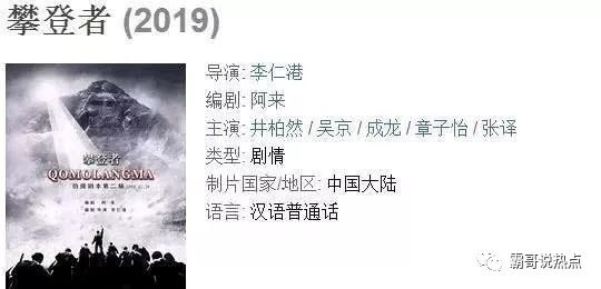 电影《攀登者》未播先火,吴京两部电影破百亿票房,现在的吴京自带光环,他的下一部电影自然备受关注,《攀登者》是由李仁港执导,吴京、井柏然、成龙、章子怡、张译等主演的剧情电影,一看演员阵容,吴京、成龙、张译章子怡实力演员,还有一个运气特别好的井柏然。