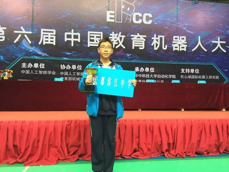 高1603班谭睿宇在中国教育机器人大赛之创意设计和制作项目中获特等奖(第一名)