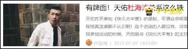 《快乐大本营》的主持人杜海涛和天佑的关系非常的好!而且杜海涛在众多节目中对天佑很照顾~