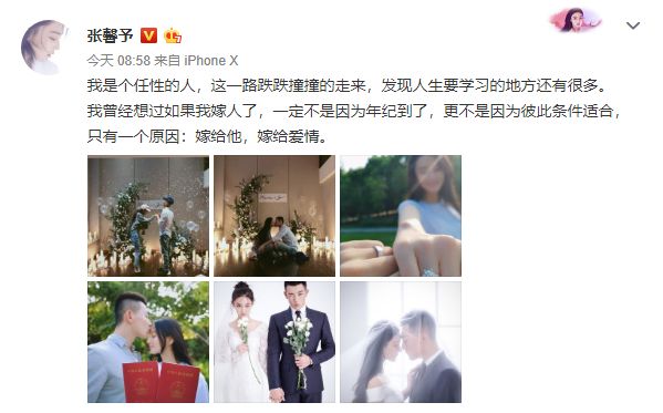 据悉,张馨予和男友在综艺节目中相识。男方名叫何捷,是现役军官,武警特战指战员,特种兵。