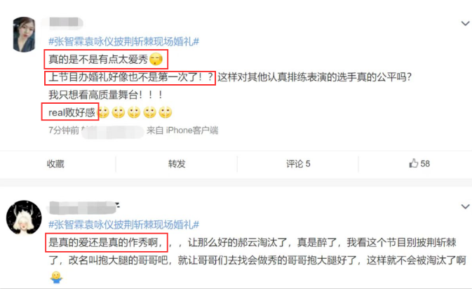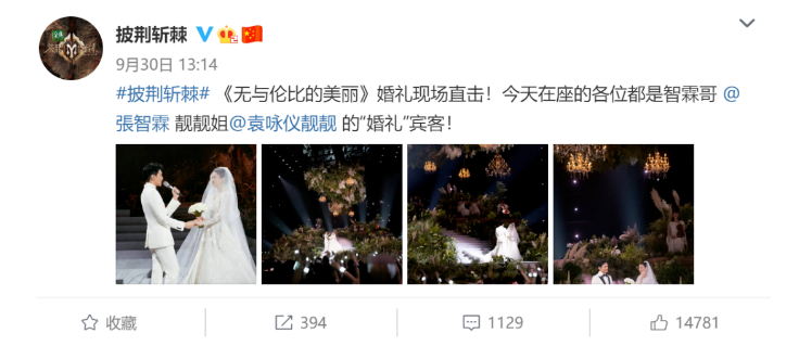 但是呼唤热度的心呼之欲出啊,连节目官微都用“婚礼现场直击”这样的词,可见这波热度营销,也是双方共同的默契了。
