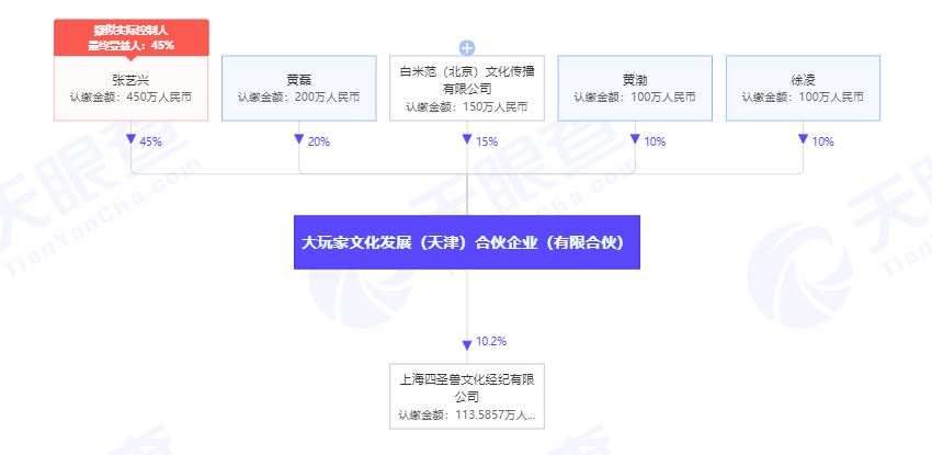 今年4月,这3人合伙成立了一家大玩家文化发展(天津)合伙企业(有限合伙)。