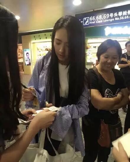 低头给粉丝签名,脸部轮廓也是很精致的,与电视上没啥很大的差距。