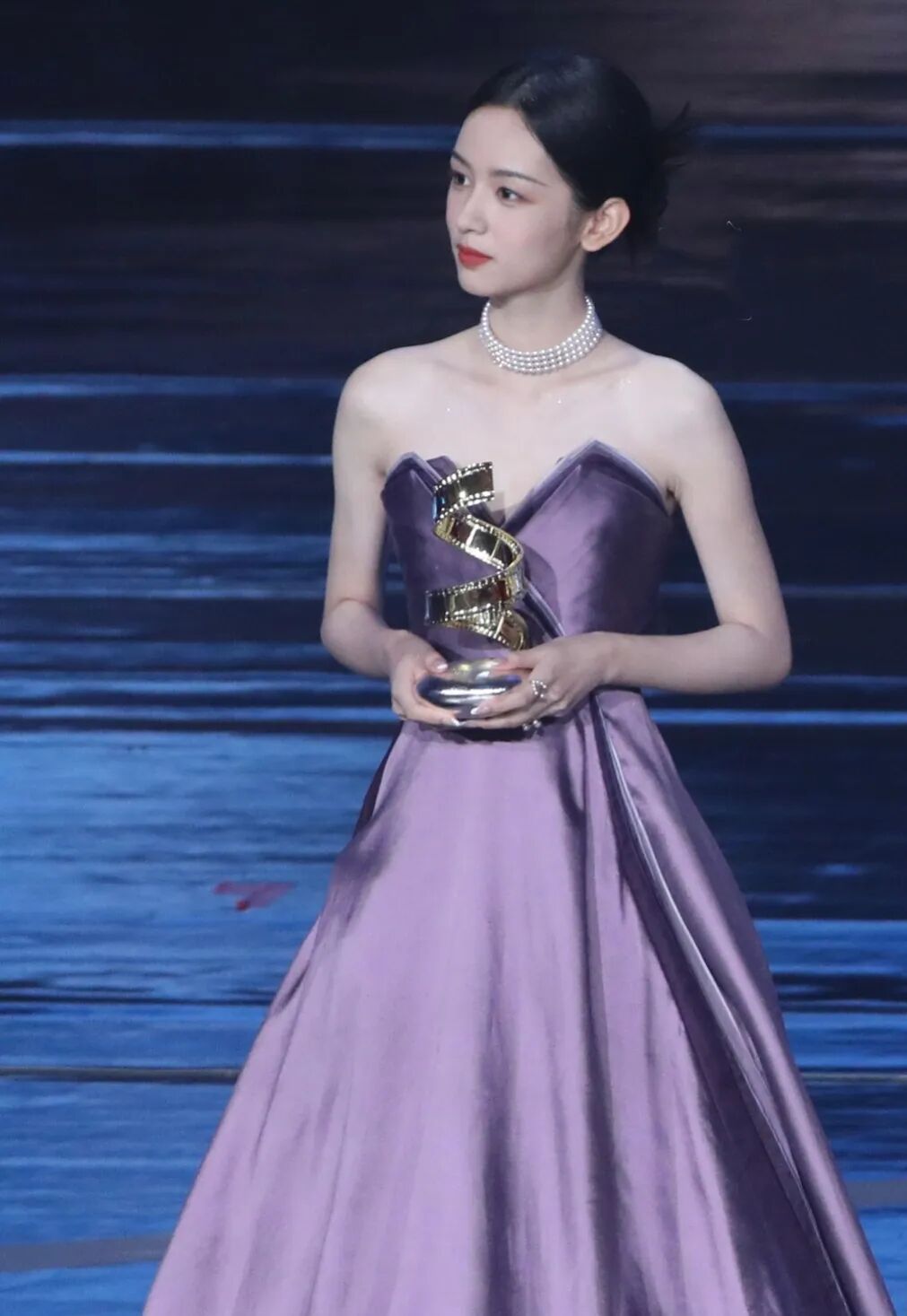 可就是这样,放在一众小花中不够拔尖的周也,却在红毯当晚赢麻了。