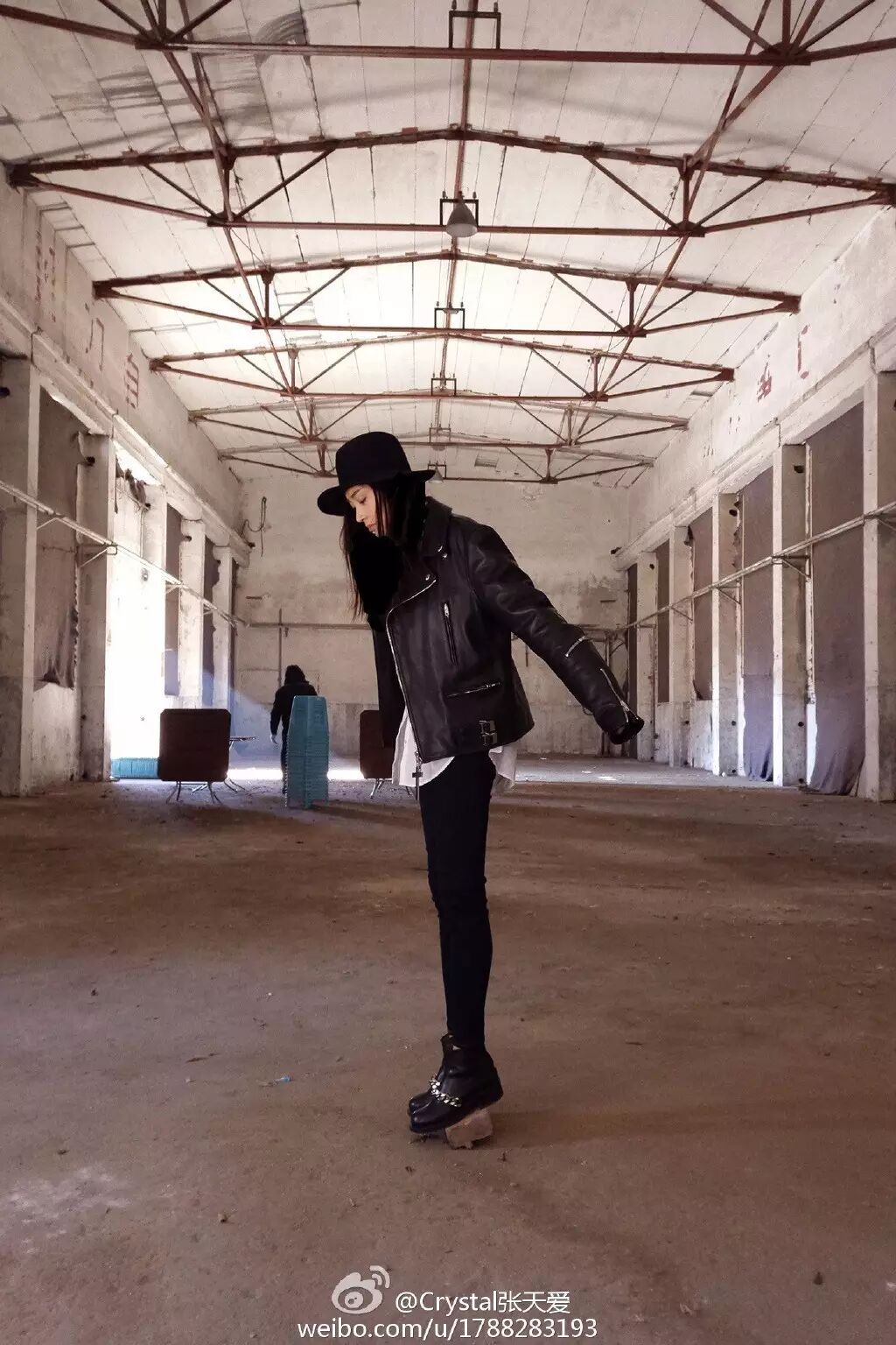 ▲谁说成熟女人就不能童真了呢?张天爱别出心裁的皮衣配上萌萌哒小包,多了几分稚气反倒更惹人爱。