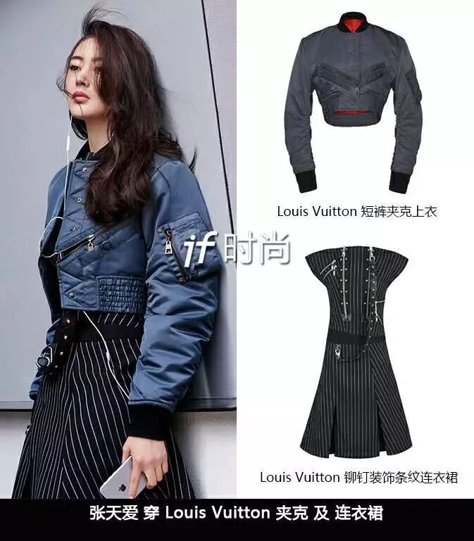 担心夹克过于men?大家也可以像张天爱一样穿连衣裙来中和一下女人味。
