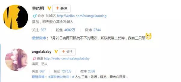 黄晓明和Angelababy微博粉丝合计1亿1952万。