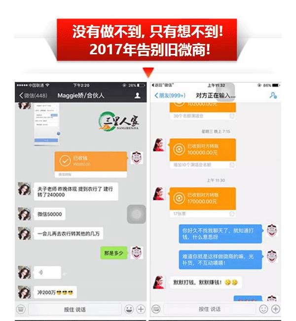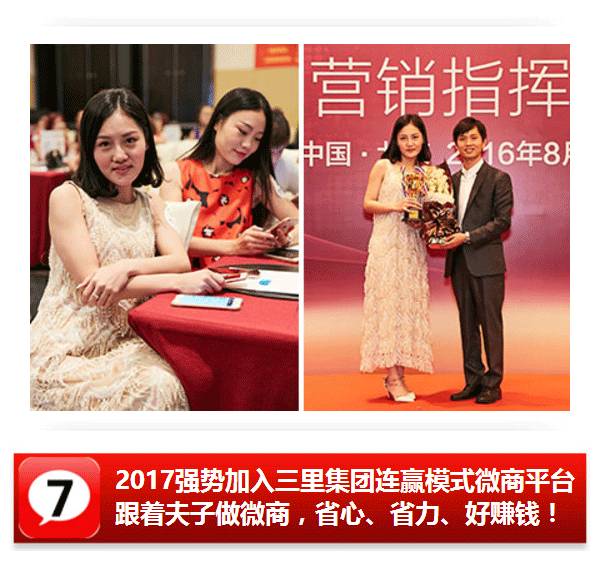 三里集团夫子的连赢模式是一个连续盈利的模式,是大家一起赚钱的一个模式,这个模式不是靠一个人的,是整个团队可以裂变。你不需要非常的专业或者说对这个行业有非常的懂,你只要认真听话照做,按照公司给你的方法,你会得到一个全新的改变。我是从最初的一个月赚几百块,到目前一个月几十万的。我现在的月流水300多万,这都是得益于三里集团夫子这个新微商平台的连赢模式。