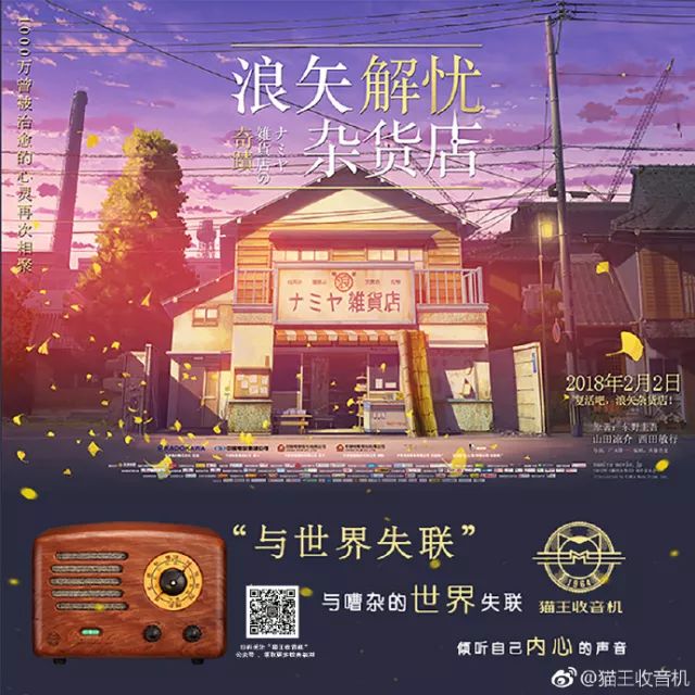 猫王收音机和《浪矢解忧杂货店》即从这个角度切入,共同打造了#与世界失联#campaign。与世界失联,才能听到自己内心的声音,才能更好的去关心你所关心的那个世界。与此同时,#与世界失联#也将猫王收音机的产品角色和《浪矢解忧杂货店》的剧情主旨巧妙的进行了结合,当你与世界失联的时间里,你依然可以通过猫王去和外界相连。