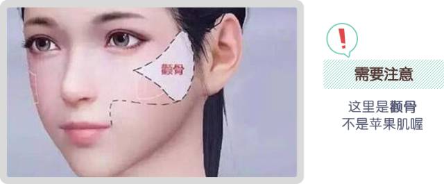 苹果肌并不是肌肉,主要是颧骨前的脂肪组织,“苹果肌”的位置是在眼睛下方二公分处呈倒三角状的组织,微笑或做表情时会因为脸部肌肉的挤压而稍稍隆起,看起来就像圆润有光泽的苹果,得名“苹果肌”。