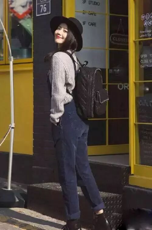2015年是属于oversize毛衣的一年,而毛衣和背带裤的碰撞,舒适、时髦又减龄,再配上双肩包和黑色宽檐帽,就这样开启新旅程吧。