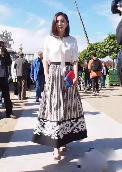 大幂幂当然不止穿裤装美,裙装也是拿手好戏,除了穿卫衣美之外,大幂幂估计也是最适合穿衬衫的女星了,白衬衫搭配印花长裙,脚踩尖头高跟鞋,对,这次走的是复古优雅的知性风!