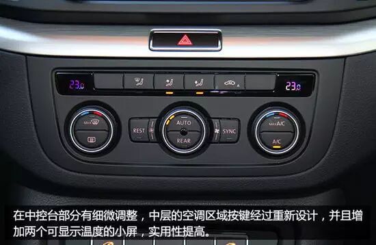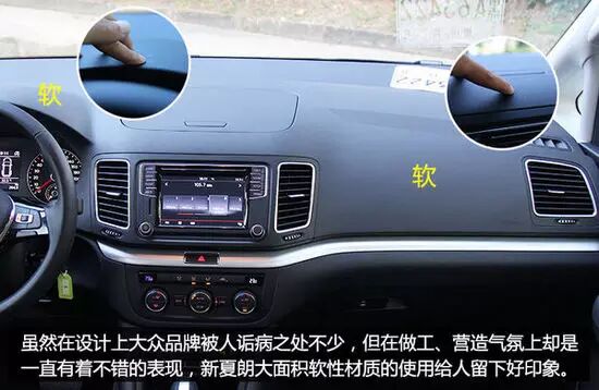 虽然在设计上大众品牌被人诟病之处不少,但在做工、营造气氛上却是一直有着不错的表现,这一点也体现在新夏朗的车内。大面积软性材质的使用给人留下好印象,视觉上、触觉上的友好度都很高,用料毋庸置疑。全新的方向盘与现款高尔夫7保持一致,手感和尺寸都令人满意。在中控台部分有细微调整,中层的空调区域按键经过重新设计,并且增加两个可显示温度的小屏,实用性提高。