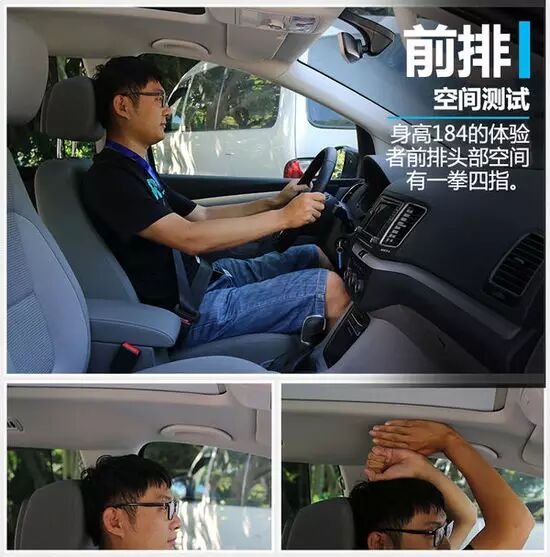 作为一款MPV,空间是最为值得说道的地方。七座设计的夏朗是2+3+2的布局,最后排可以放倒。当驾驶席调整好坐姿,身高184的体验者头部空间有一拳四指,转至第二排腿部空间为一拳,头部空间为四指。乘坐第三排时腿部、头部空间很局促,并不适合身材高大的乘客乘坐。