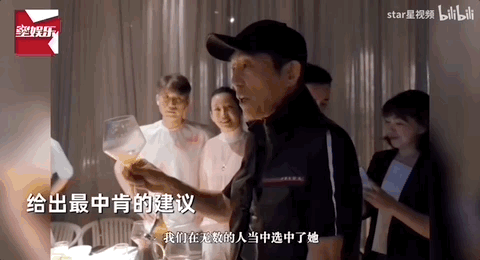 张艺谋举杯当着在场包括秦海璐、于和伟在内的老戏骨,嘱咐刘浩存,你是我们从无数人中选出来的,在场的资深演员都是你学习的榜样。